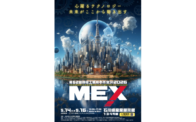 2026年5月14日(木)~16日(土)に石川県産業展示館で開催されるMEX金沢2026(第62回機械工業見本市金沢)に出展いたします。