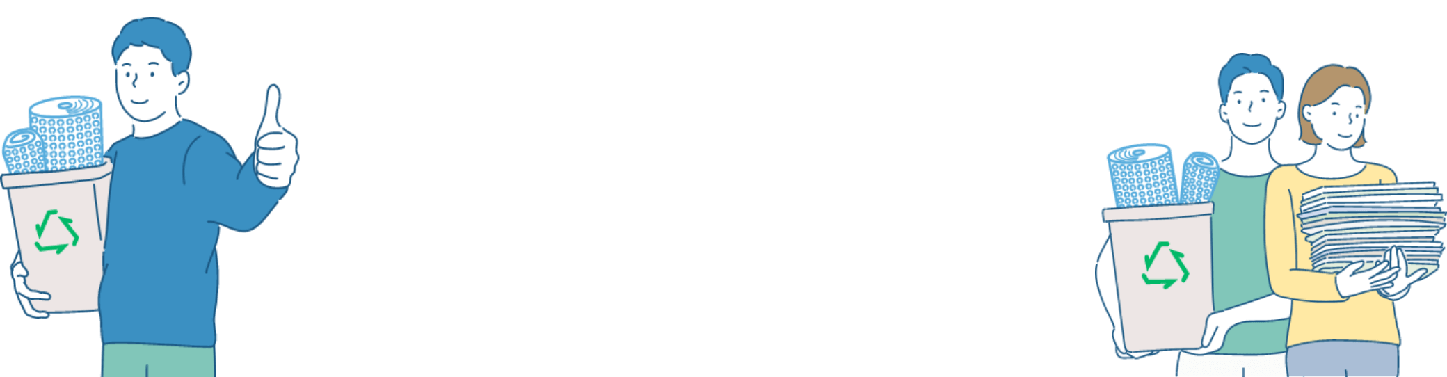 Puti-Puti is an important recyclable resource. We have been conducting the “Puti-Puti Recycling Project” since 2021 to collect used Puti-Puti (bubble cushioning material) from ordinary households and other locations. We aim to install dedicated collection boxes at local governments, schools, public facilities, and other locations throughout Japan.