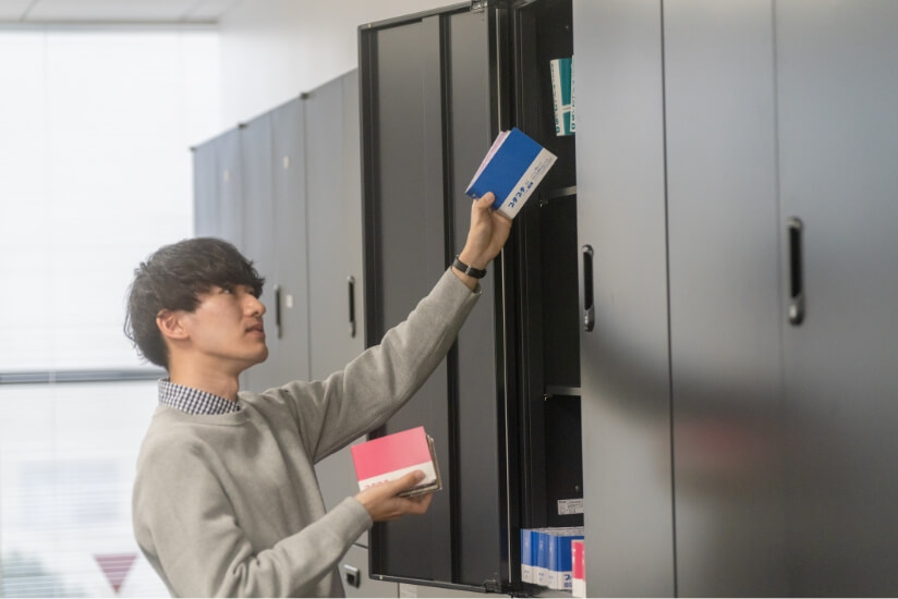 また、他部署と相談して業務効率化の取組みを進めています。例えば、情報システム職と相談し、お客様にFAX等で送信していた出荷案内書を自動でデータ送信できるように変更しました。日々の業務が楽になるよう、意見を出し合って改善を進めています。